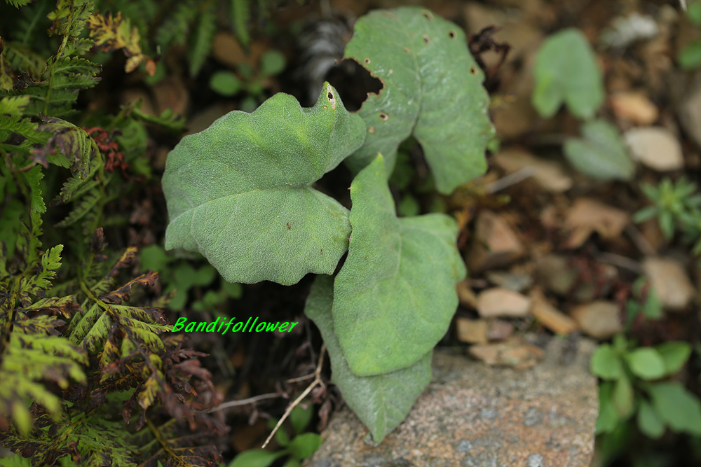 잎은 삼각형이고 두꺼우며 양면에 거미줄 같은 흰털이 있고 밑은 심장저이며