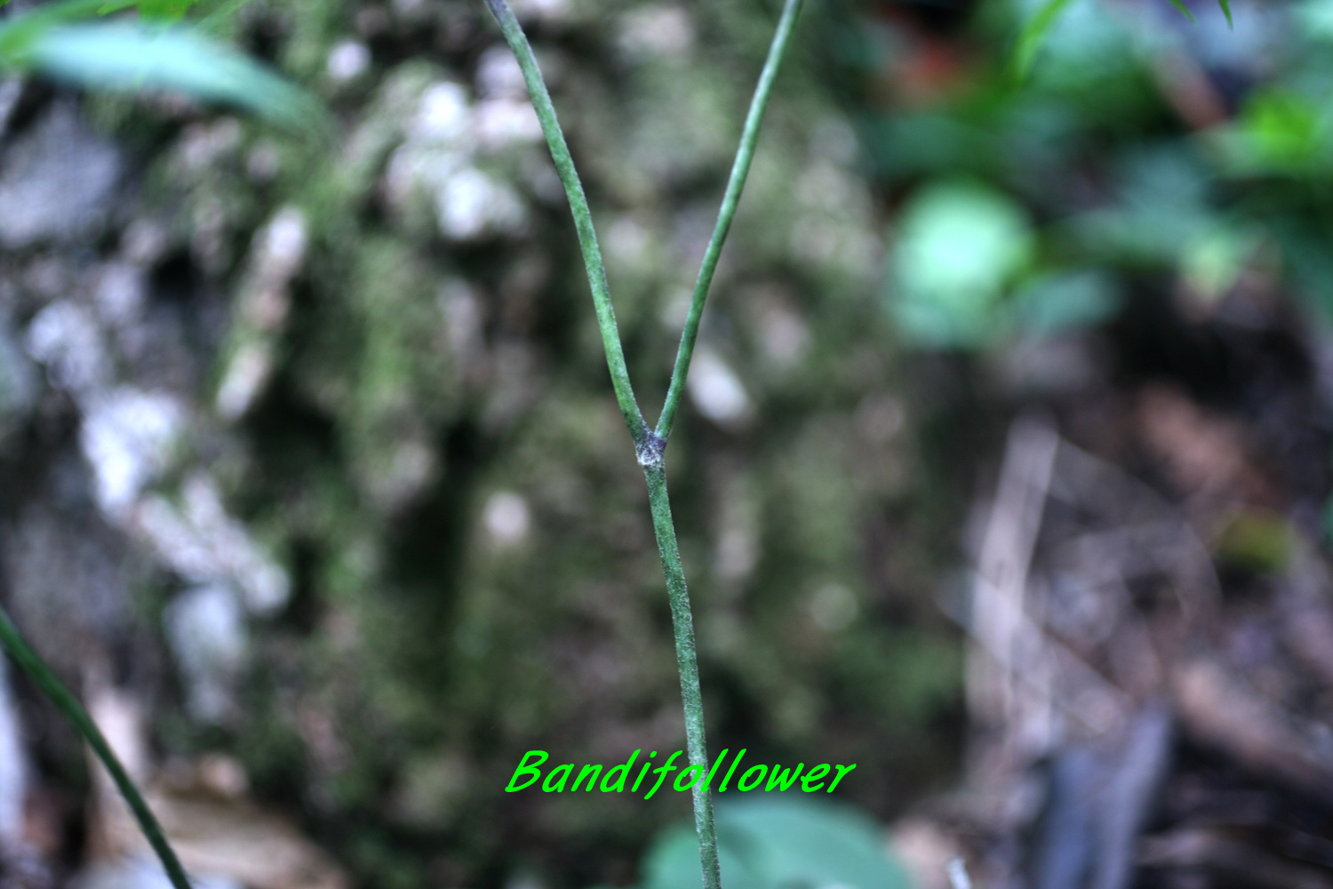 잎은 2장인데 피침형으로 깊게 갈라지고 다시 2갈래로 갈라진다