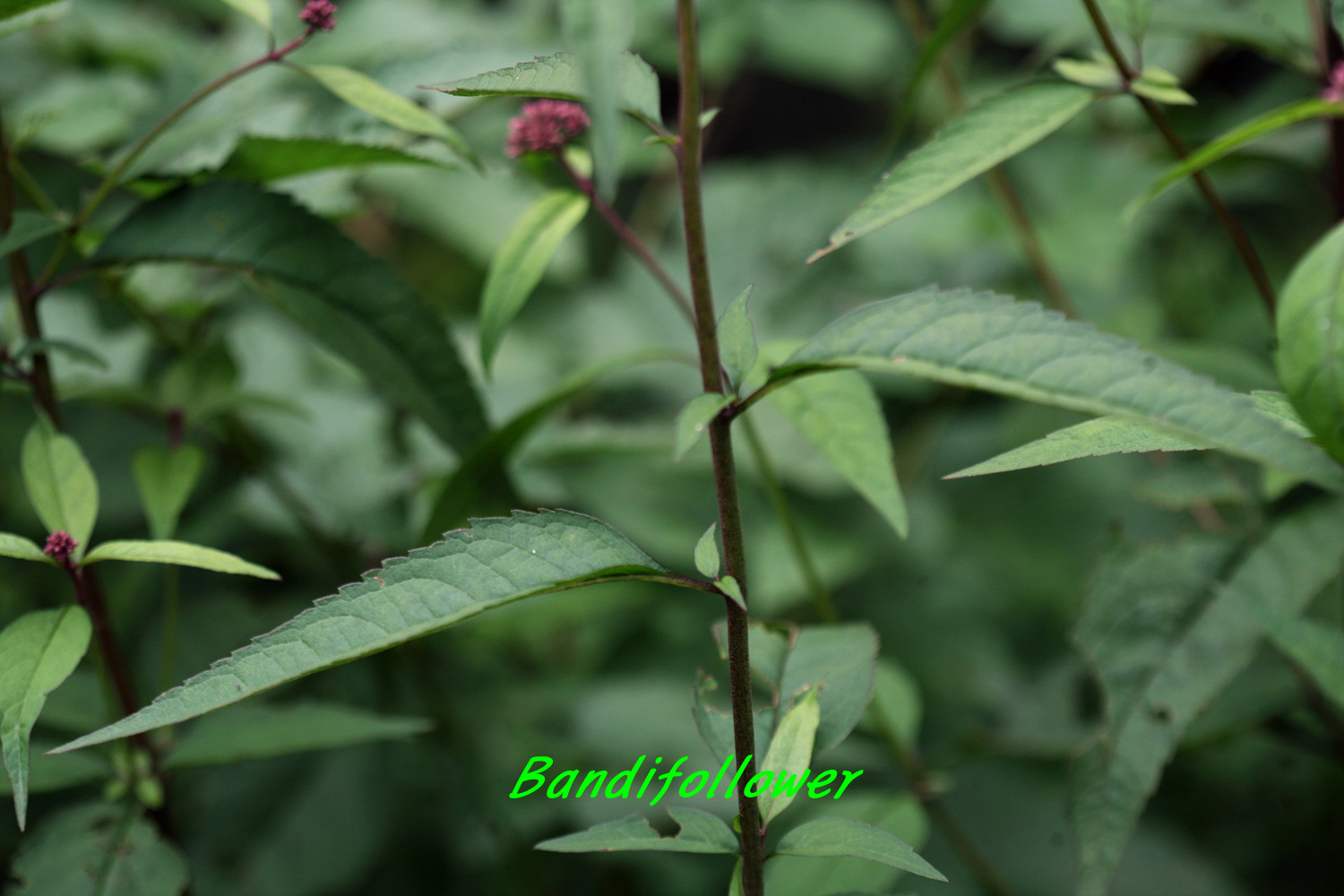 가장자리에 톱니가 있다. 꽃은 8~9월에 홍자색으로 핀다