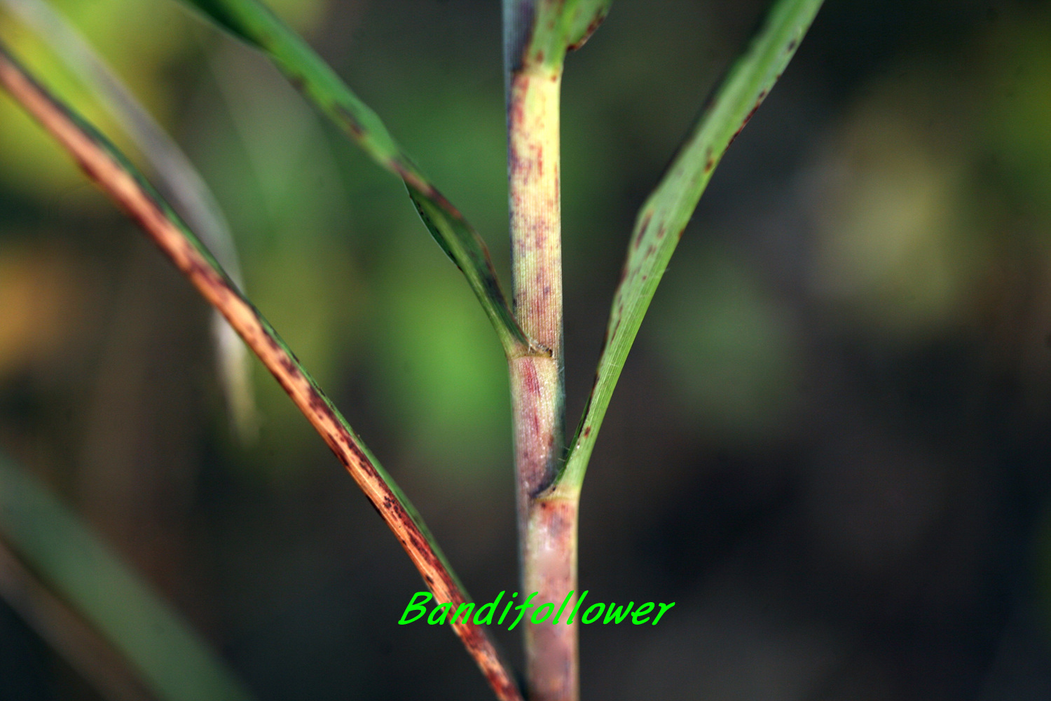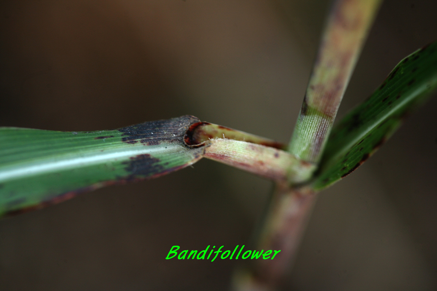 줄기 마디와 엽신 양면에 흰 가루가 있는 경우가 있고 엽신은 막질로