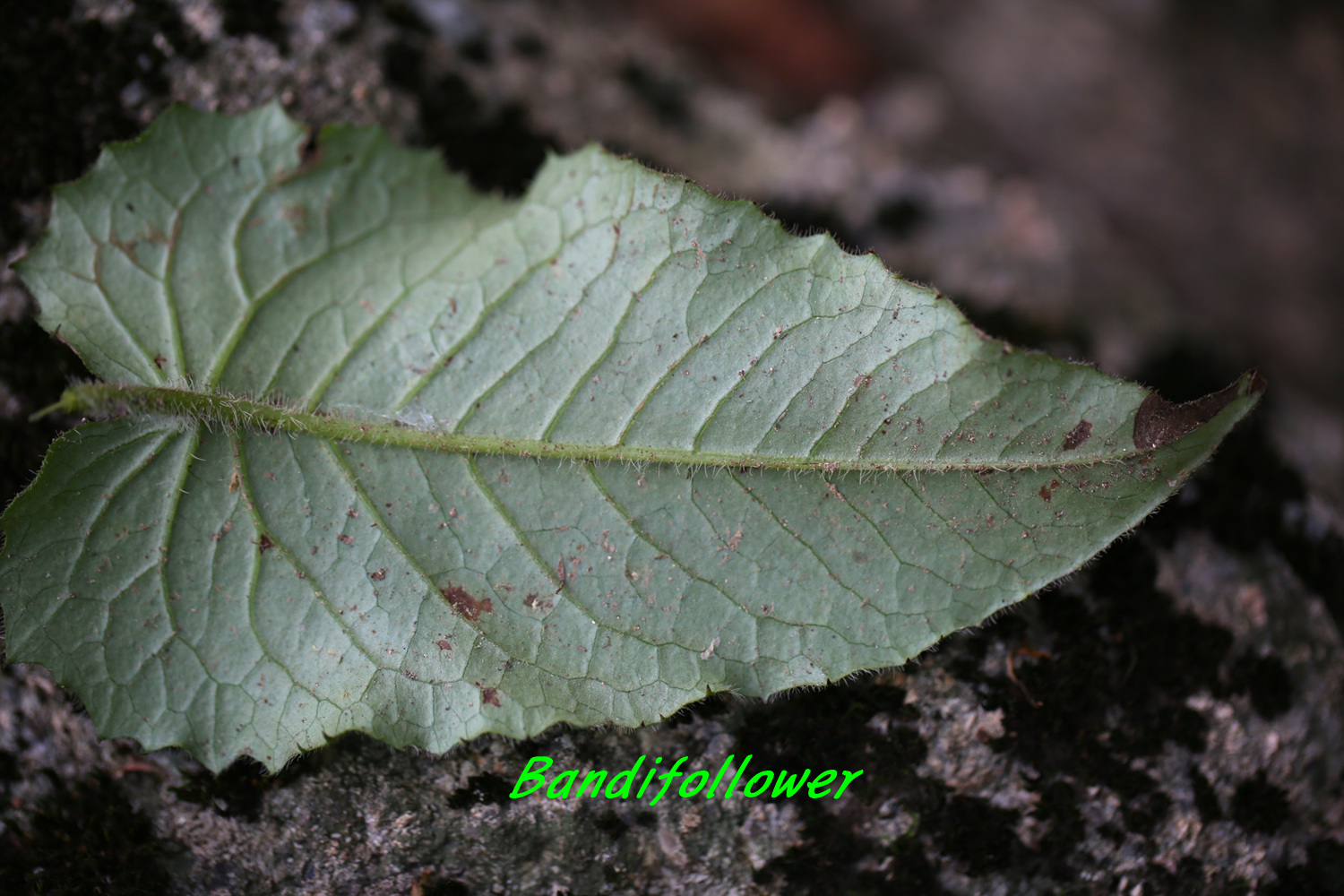 잎은 좁은 심장형으로 밑은 심장 모양이고 끝은 뾰족하며 가장자리에 톱니가 있다