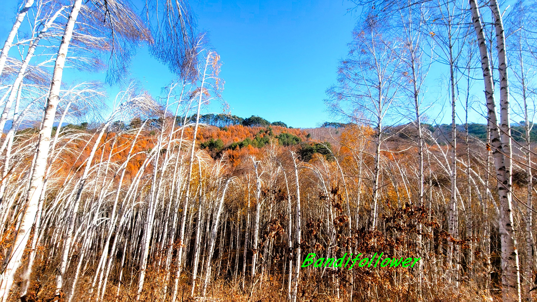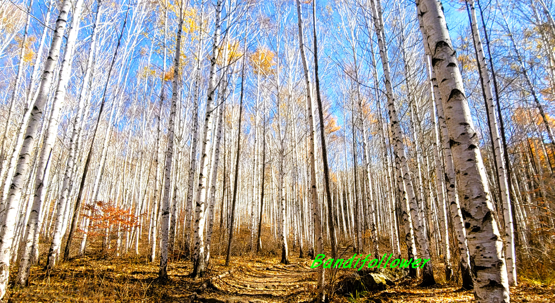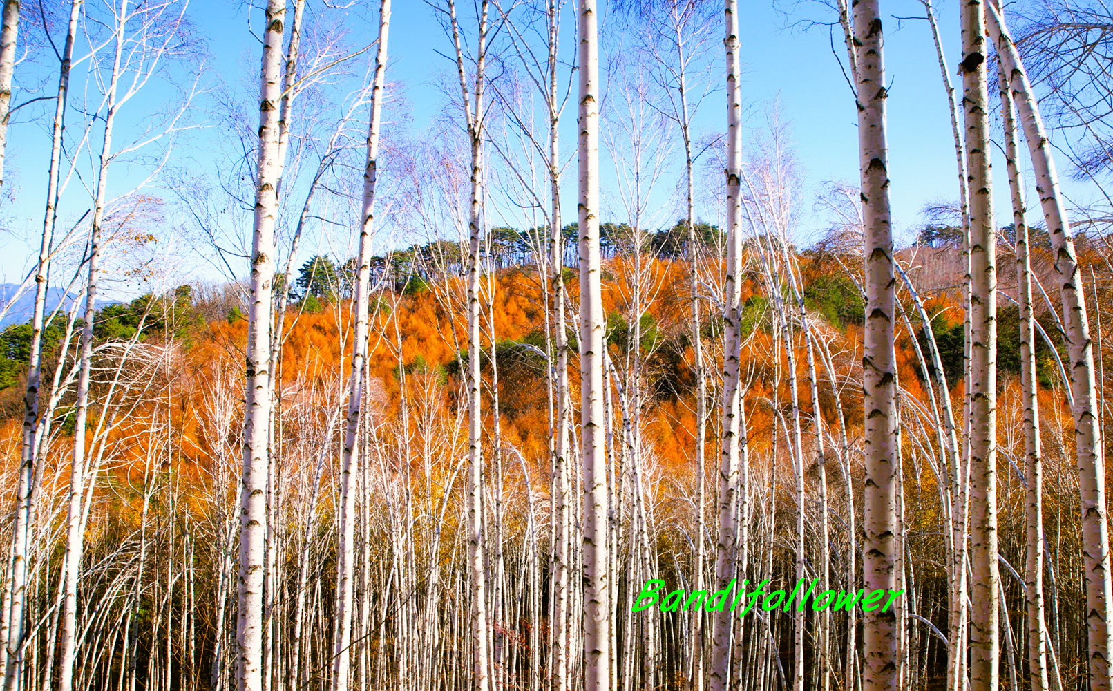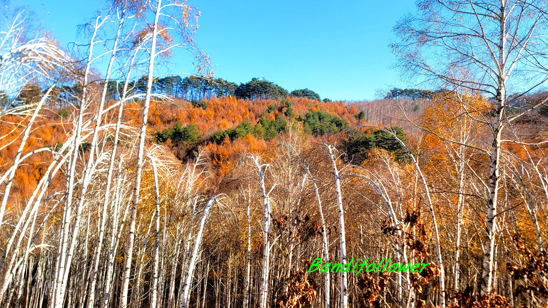 인제 원대리의 자작나무 숲에는 잎갈나무의 단풍이 곱게 물들어서