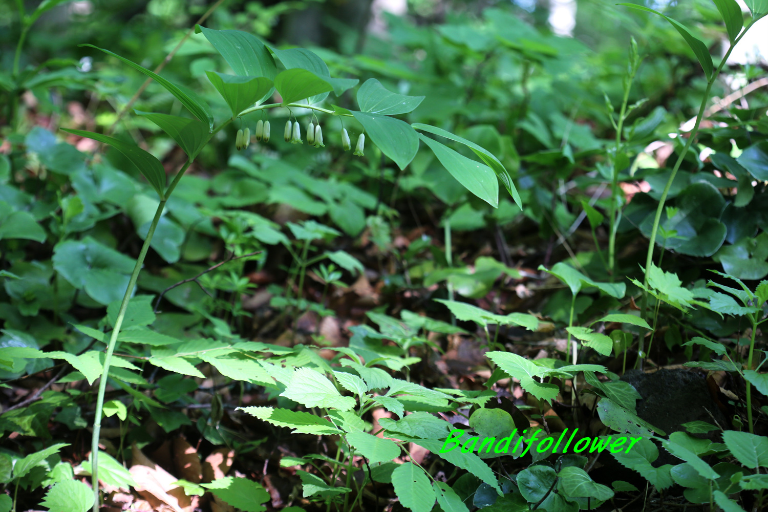 꽃은 5월에 잎겨드랑에서 난 꽃대에 2~3개가 달리며 녹색이 도는 흰색이다