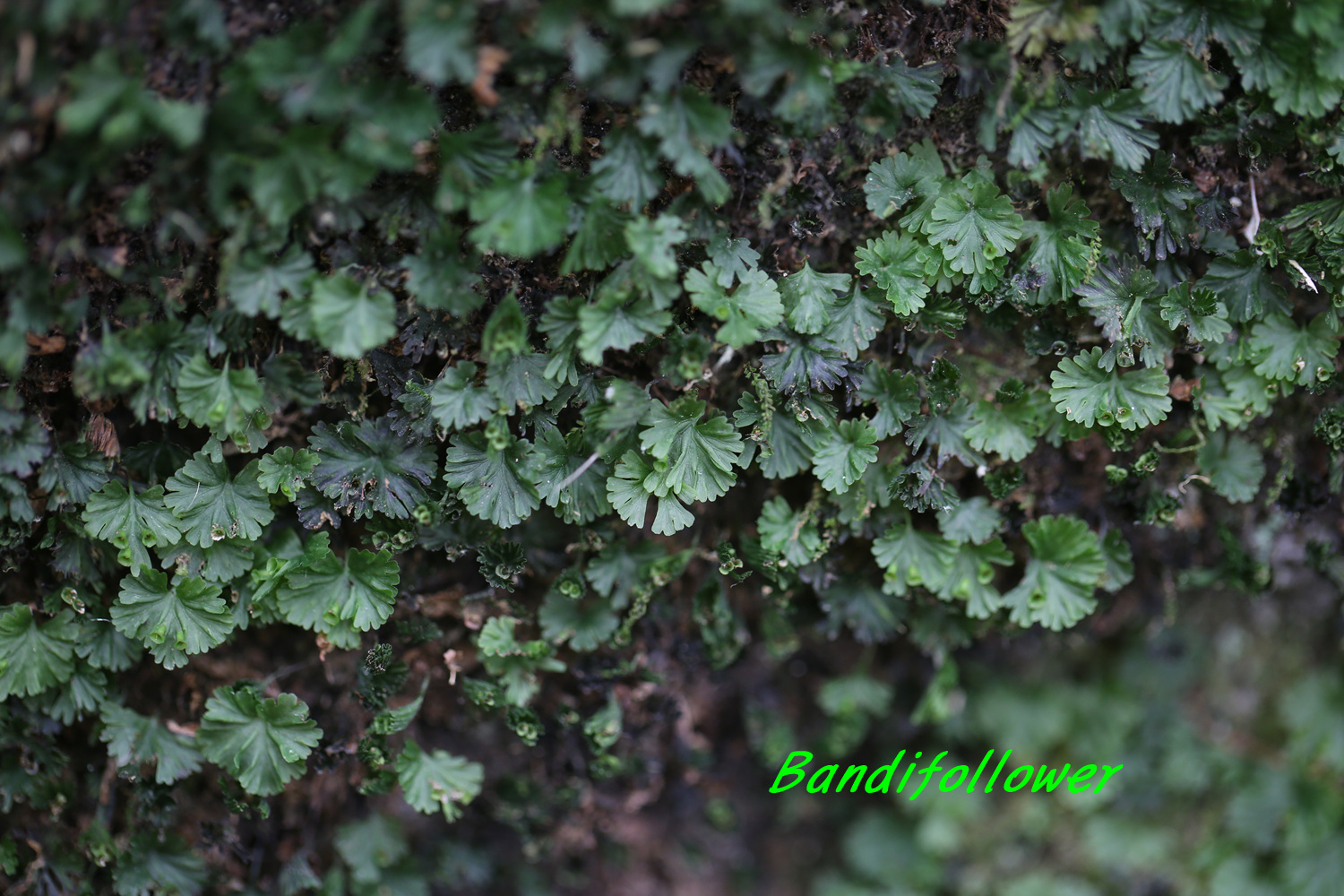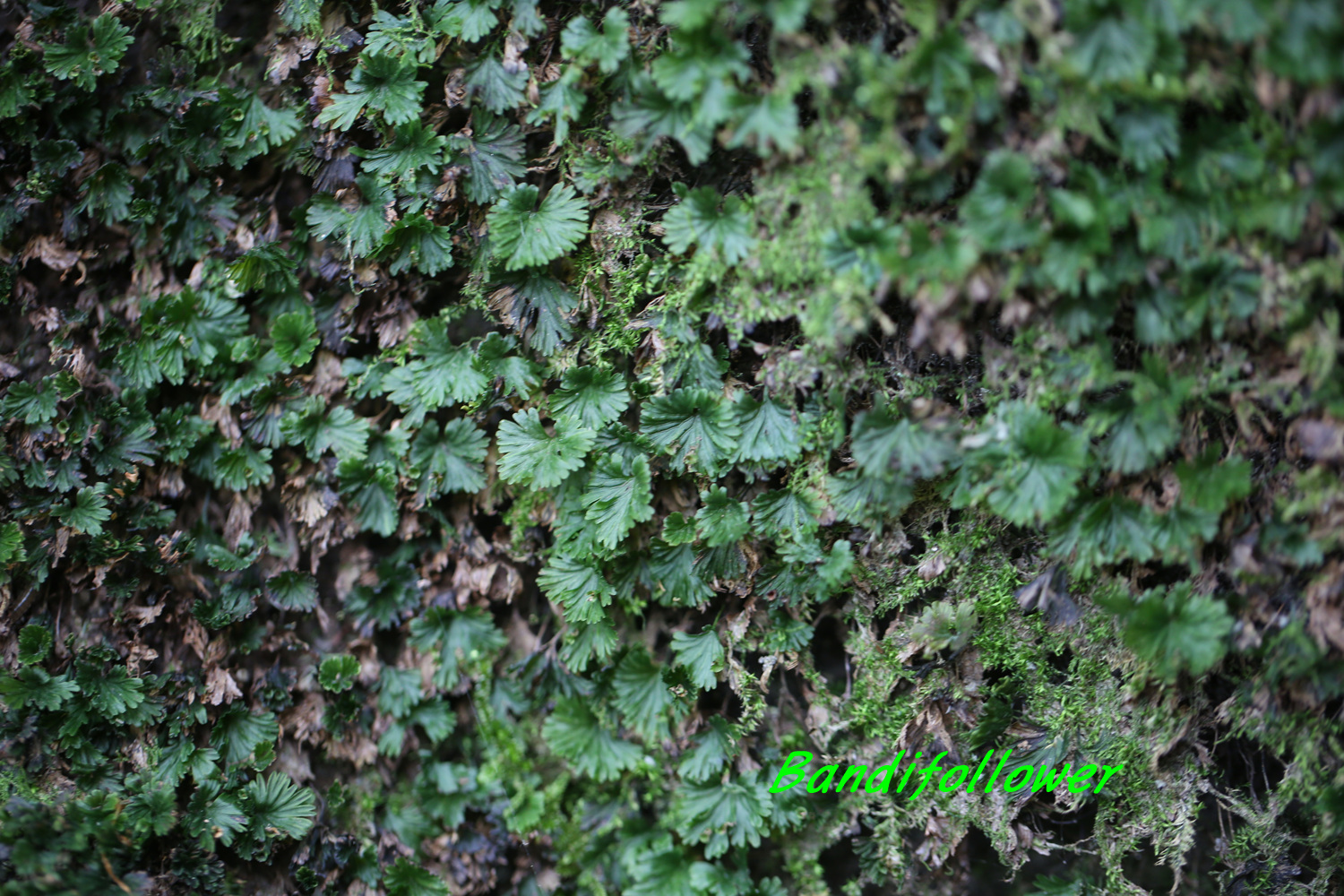 산지의 그늘진 바위 위나 고목의 밑동에 모여서 자란다