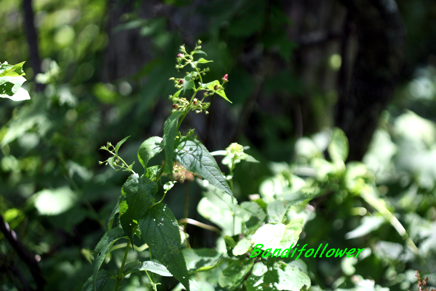 산지의 반그늘에서 자라고 키는 1.5m 정도로 자란며 사각형의 줄기는 곧게 선다.